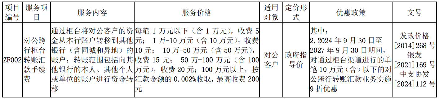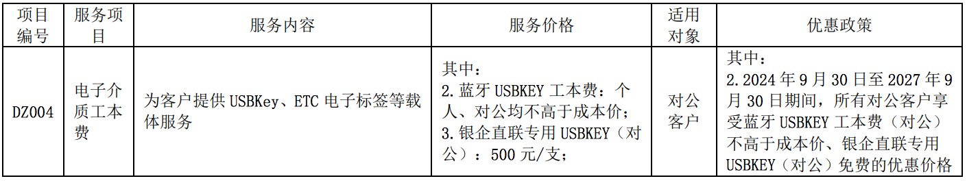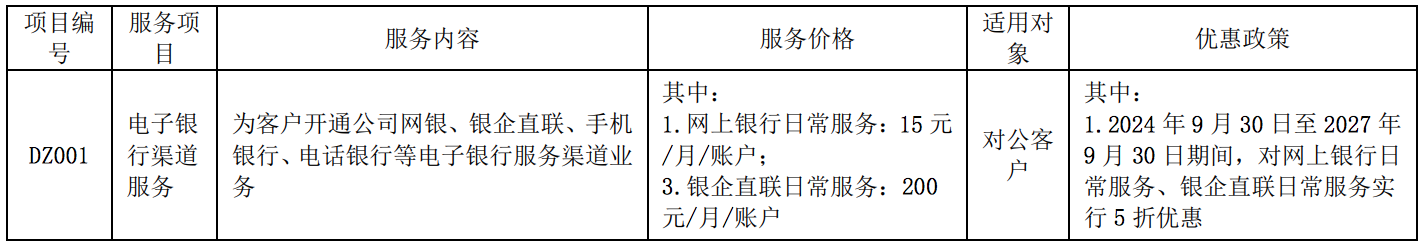 今年在优惠政策即将到期之际,我行持续贯彻落实中国支付清算协会《关于鼓励降低小微企业支付手续费的倡议》,践行金融的政治性和人民性,进一步加大对实体经济的支持力度,所有对公客户延长减费让利优惠政策三年。根据《商业银行服务价格管理办法》(中国银监会 国家发展改革委令2014年第1号)的规定,现将调整后的服务项目及服务价格予以公示如下: