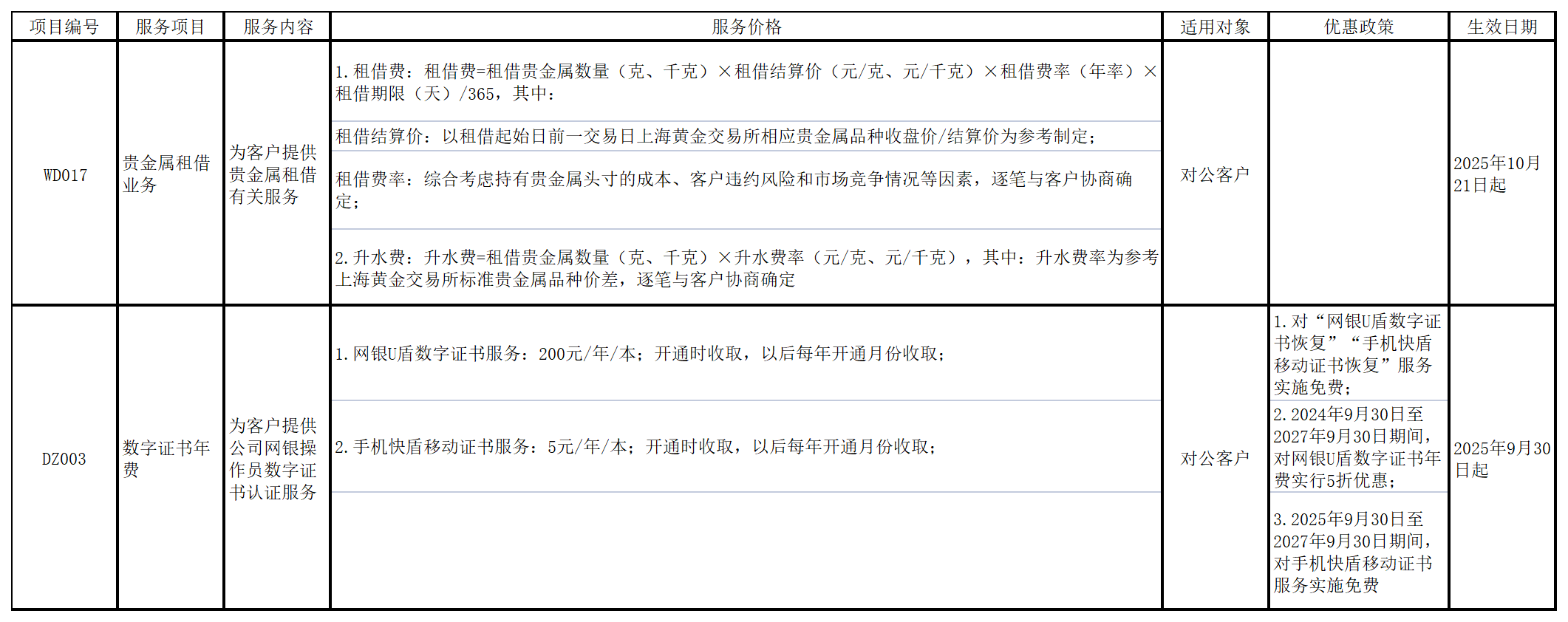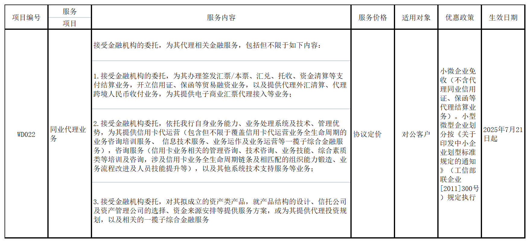 根据业务发展需要,我行拟调整部分服务收费项目,根据《商业银行服务价格管理办法》(中国银监会 国家发展改革委令2014年第1号)的规定,现将调整后的服务项目及服务价格予以公示如下: